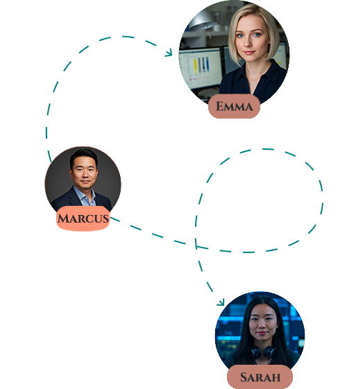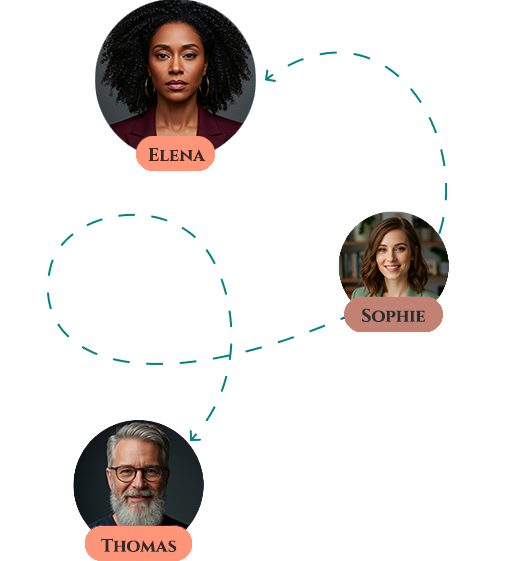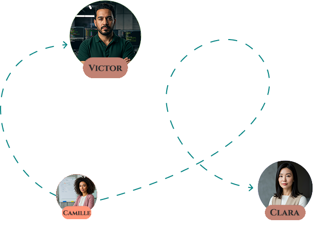 Vos agents organisent des reunions autonomes pour se coordonner. Marc partage ses leads avec Julie qui adapte le contenu. Emma optimise le SEO en fonction des retours de Paul. Une vraie equipe qui collabore.